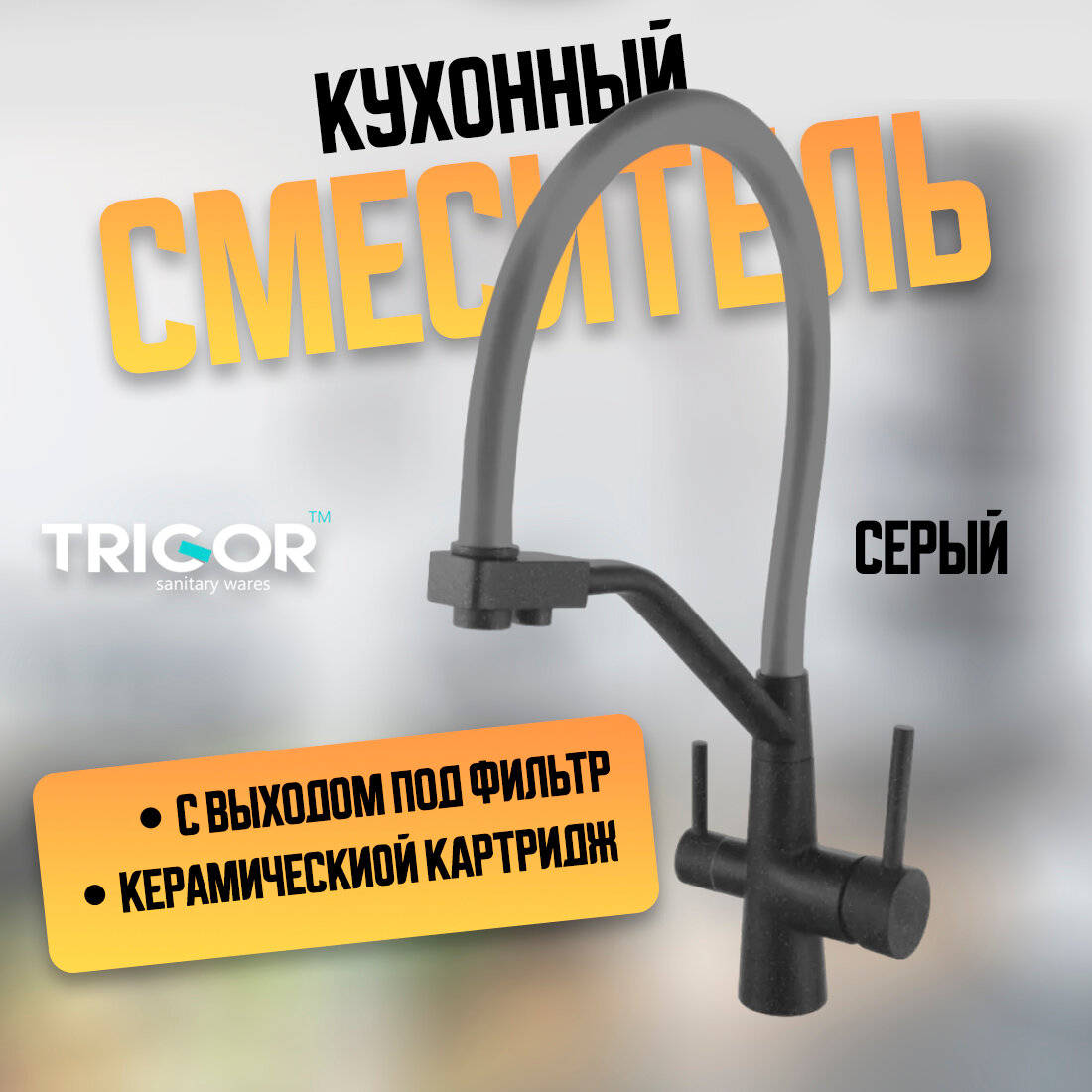 Отзывы на Смеситель (кран) для кухни с фильтром для питьевой воды, для раковины на кухню с гибким изливом, Trigor NZL11-MD-KG-808 черный корпус, серый излив