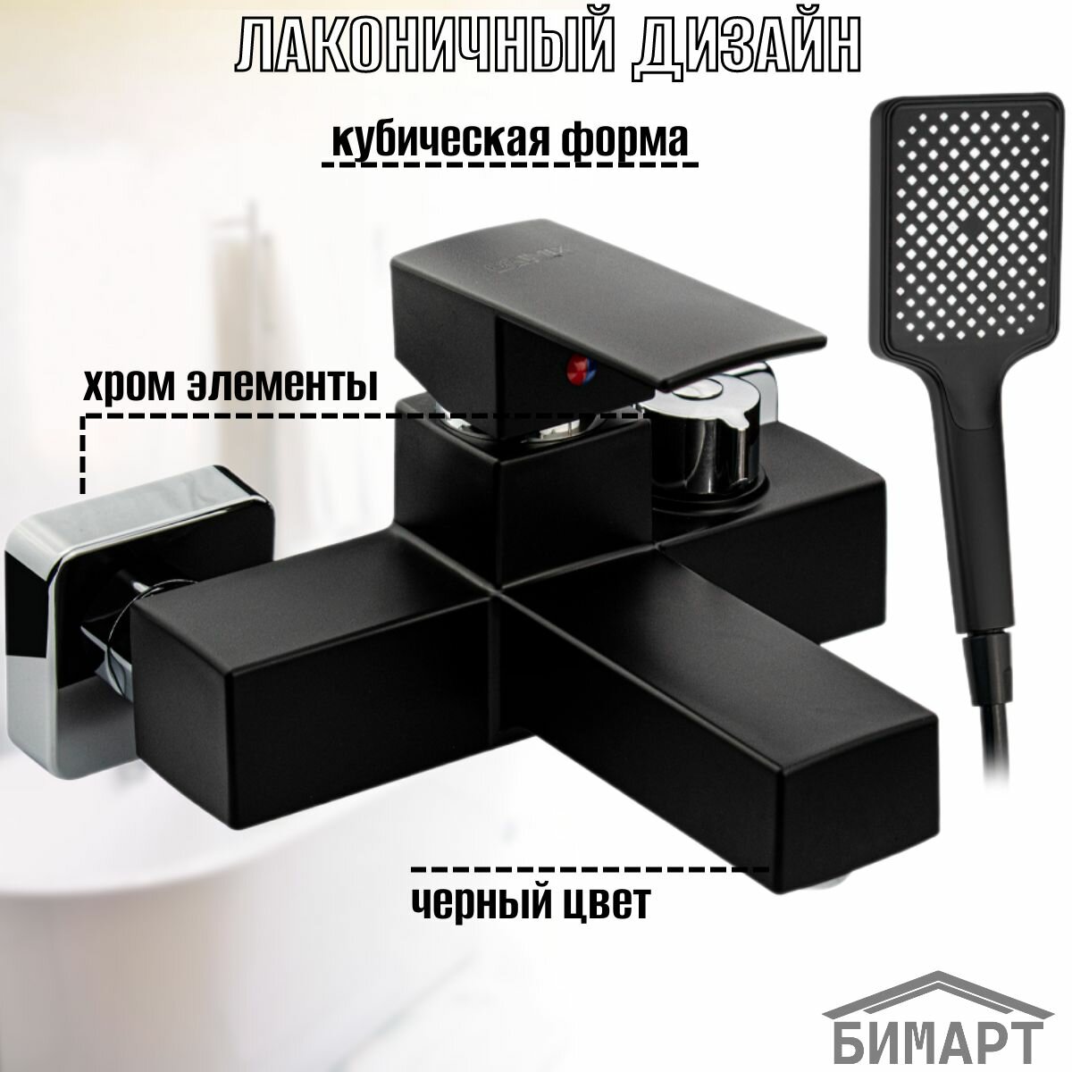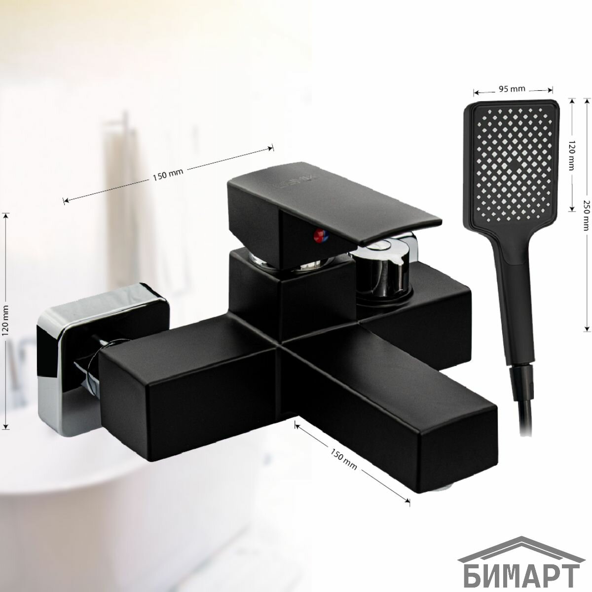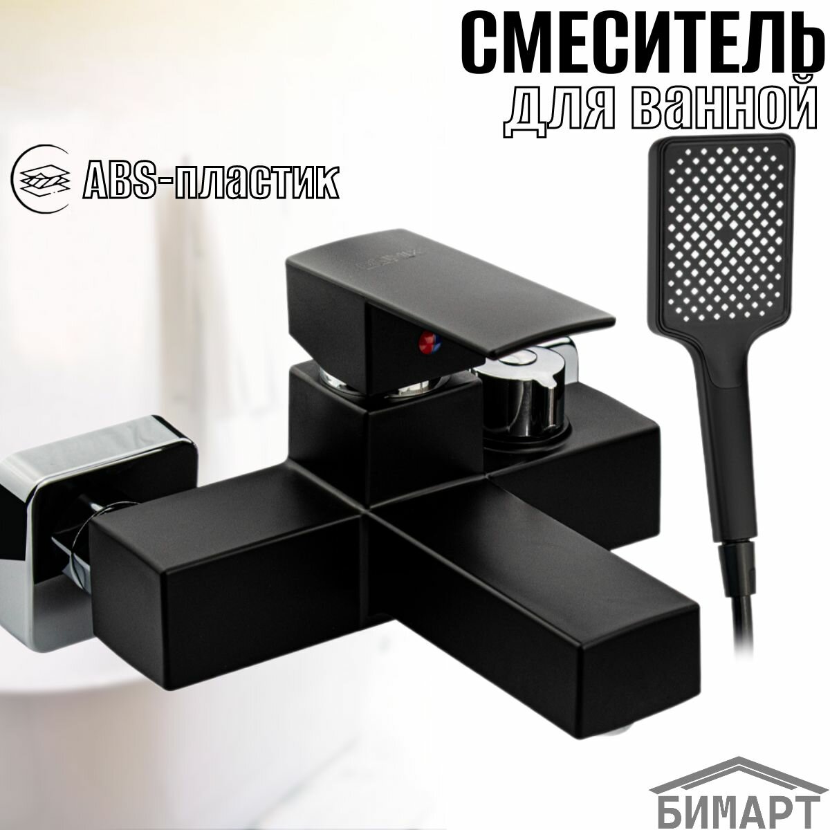 BRIMIX - Смеситель в ванную, короткий излив, шаровый, из высокопрочного пластика АБС, черный, поворотный дивертор , квадратный корпус .