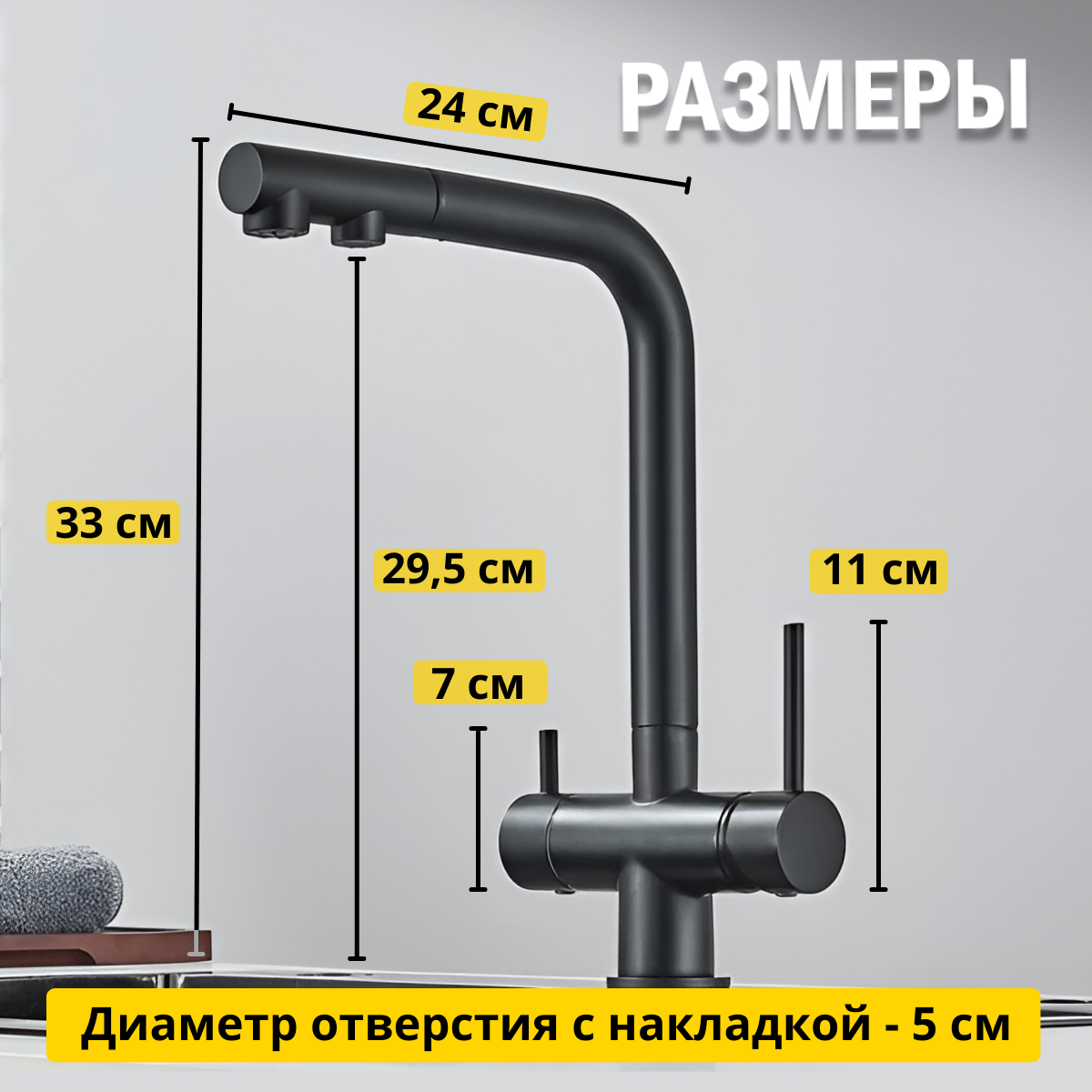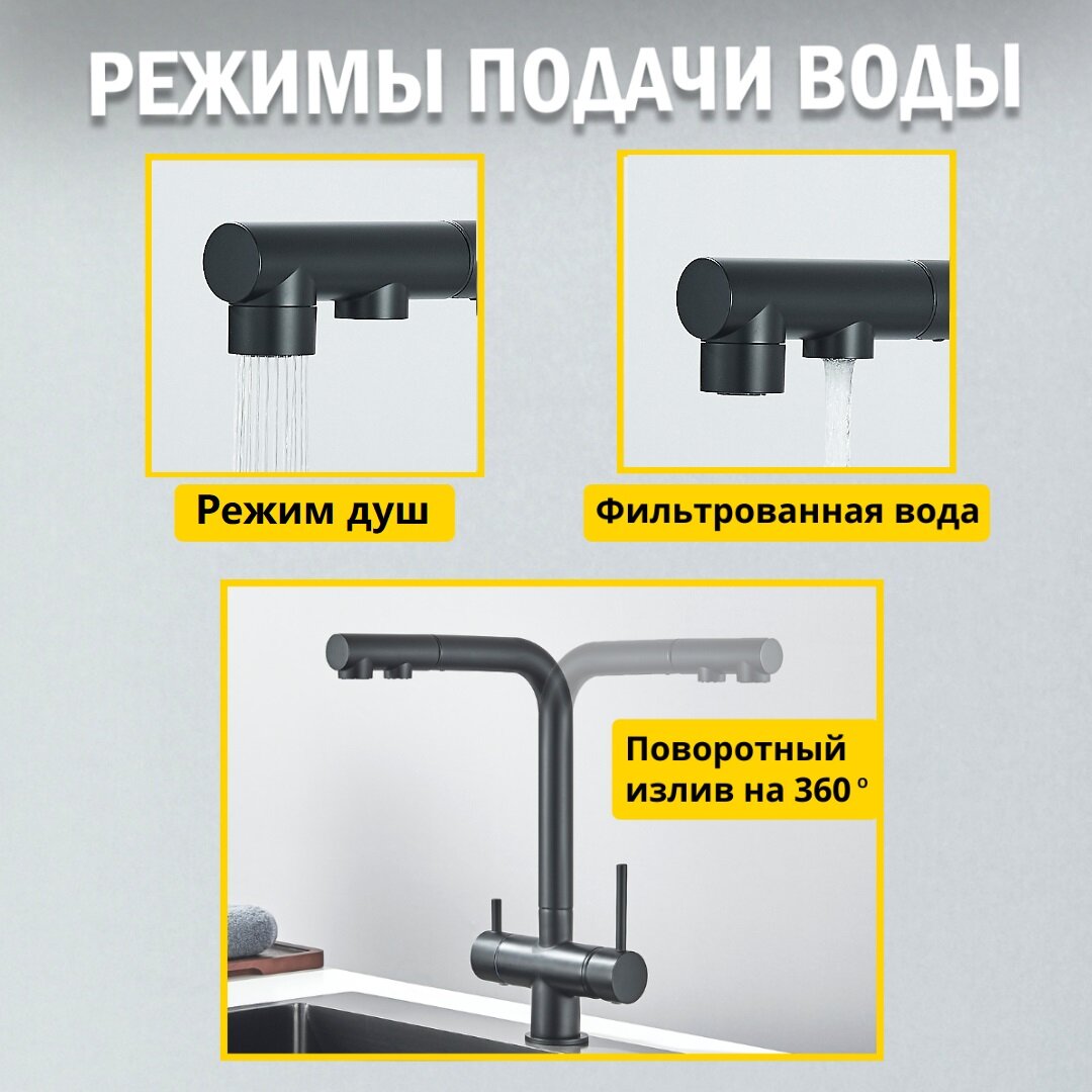 Смеситель для кухни с подключением к фильтру с питьевой водой из нержавеющей стали SUS304 Calorie CAL50116-3