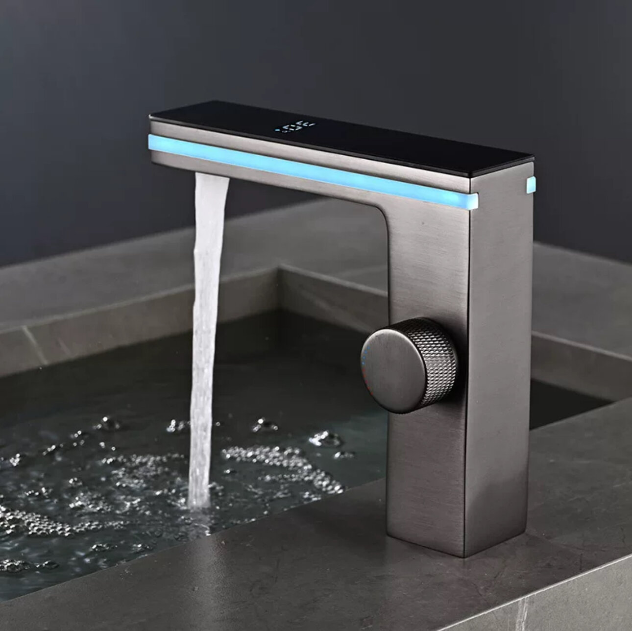 Смеситель для раковины с датчиком температуры и подсветкой, графит информация: