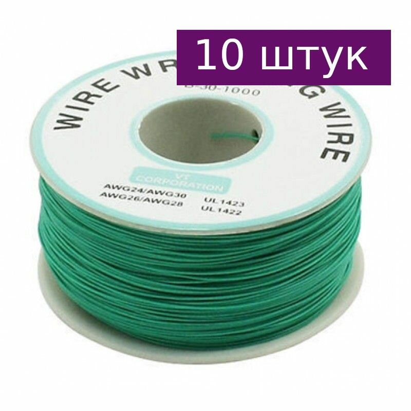 10 цен на Провод монтажный 30AWG зеленый бобина 200м, 10 шт.