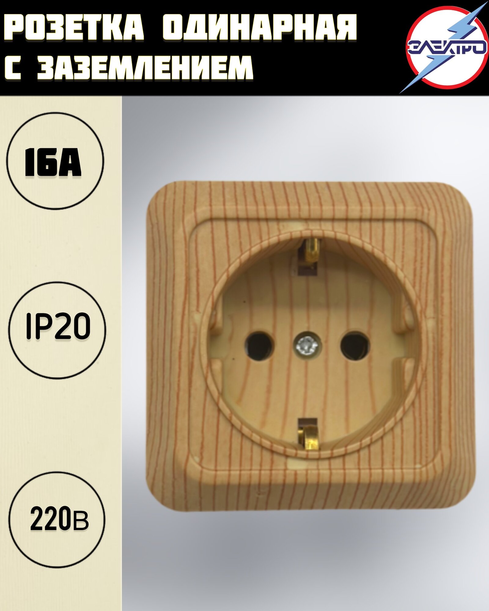Розетка с заземлением накладная одинарная сосна информация: