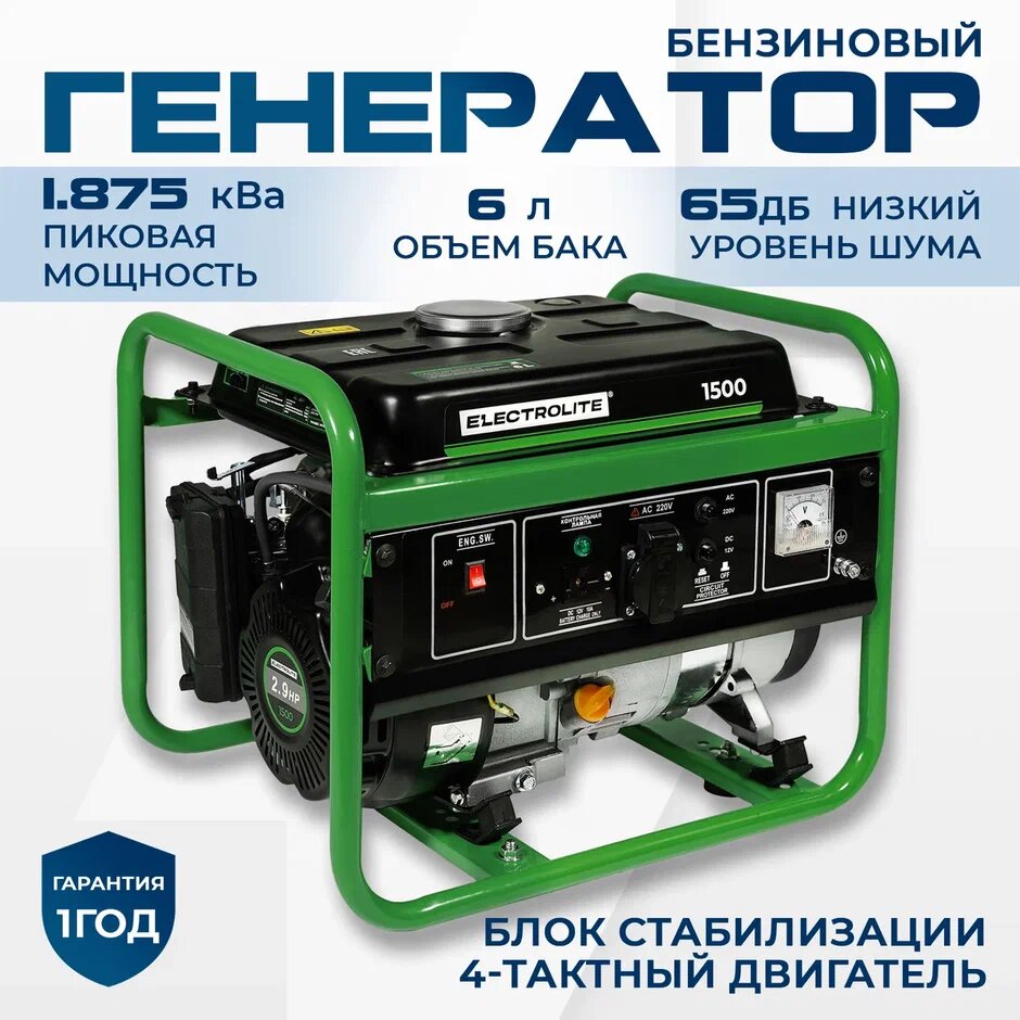 Отзывы на Генератор бензиновый Электрический / бензогенератор Electrolite 1500 (1 фаза, 4-х тактный двигатель, 1.875 кВа максимальная нагрузка , 220 В / 12 В, 1 / 1.2 кВт, 50 Гц, ручной стартер )