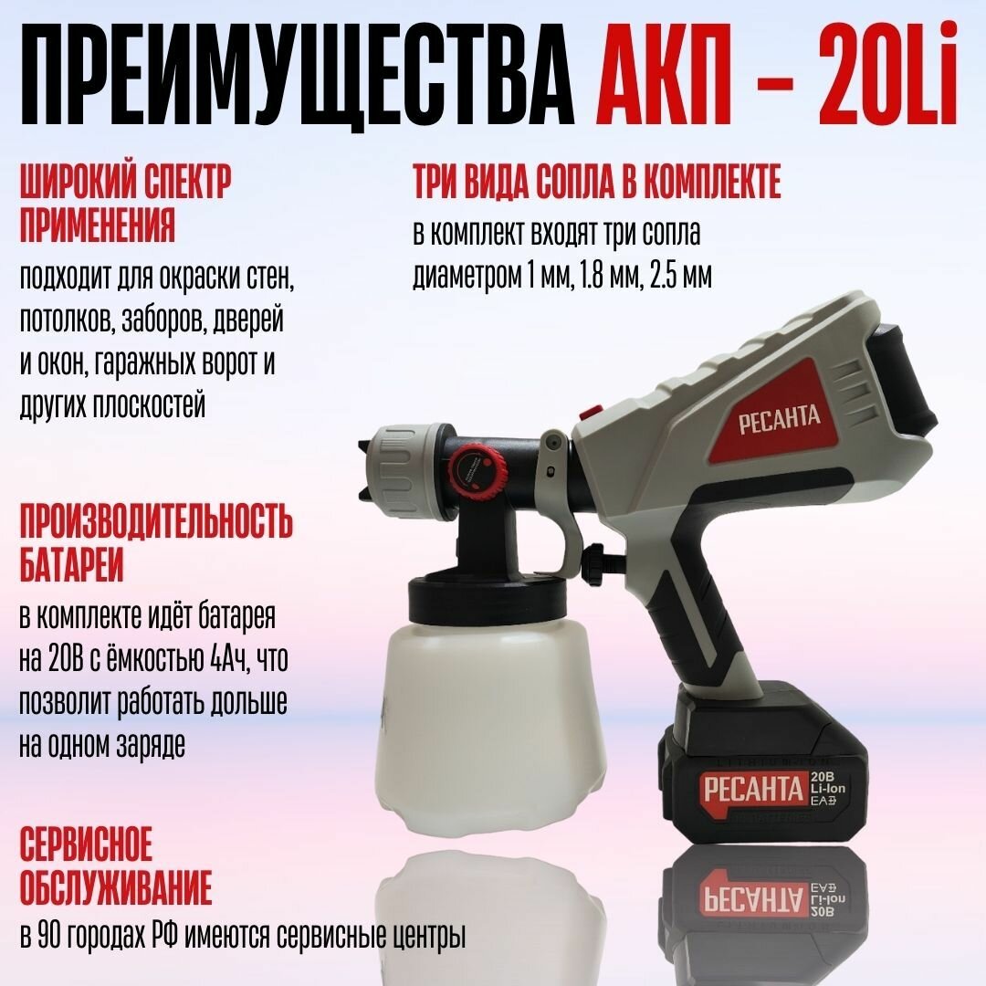 10 цен на Краскопульт аккумуляторный Ресанта АКП-20Li (1АКБ+ЗУ) (75/17/3)