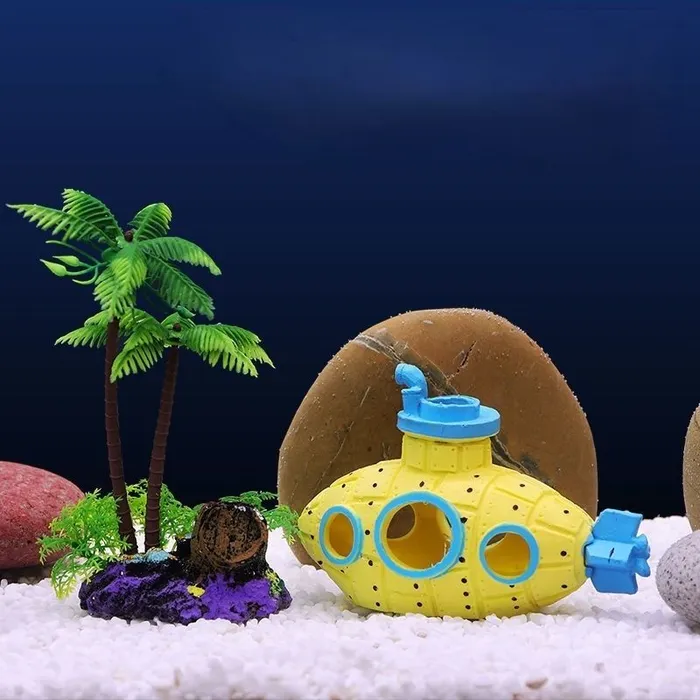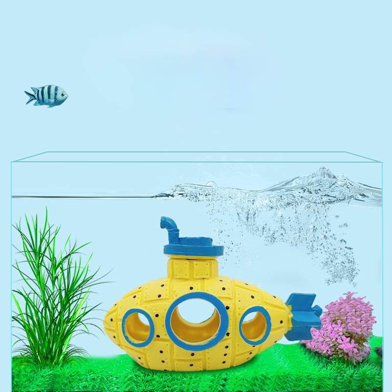 10 цен на Декор для аквариума для рыбок плешоп домик для рыбок в аквариум "Подводная лодка", желтая