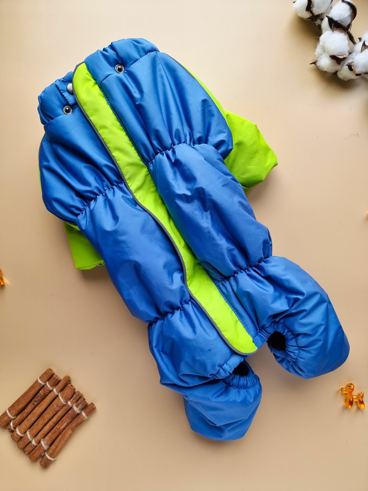 Комбинезон зимний "ZOO" со съемным капюшоном для французских бульдогов и пород схожей комплекции, голубой/салат, ФР-2 информация: