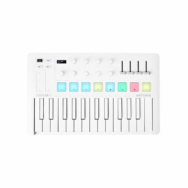 Миди-клавиатура Arturia MIDI клавиатура [MiniLAB 3 Alpine White] 25 клавиш, 8 энкодеров, 8 RGB пэдов, 8 фейдеров, дисплей, сенсорные регуляторы информация: