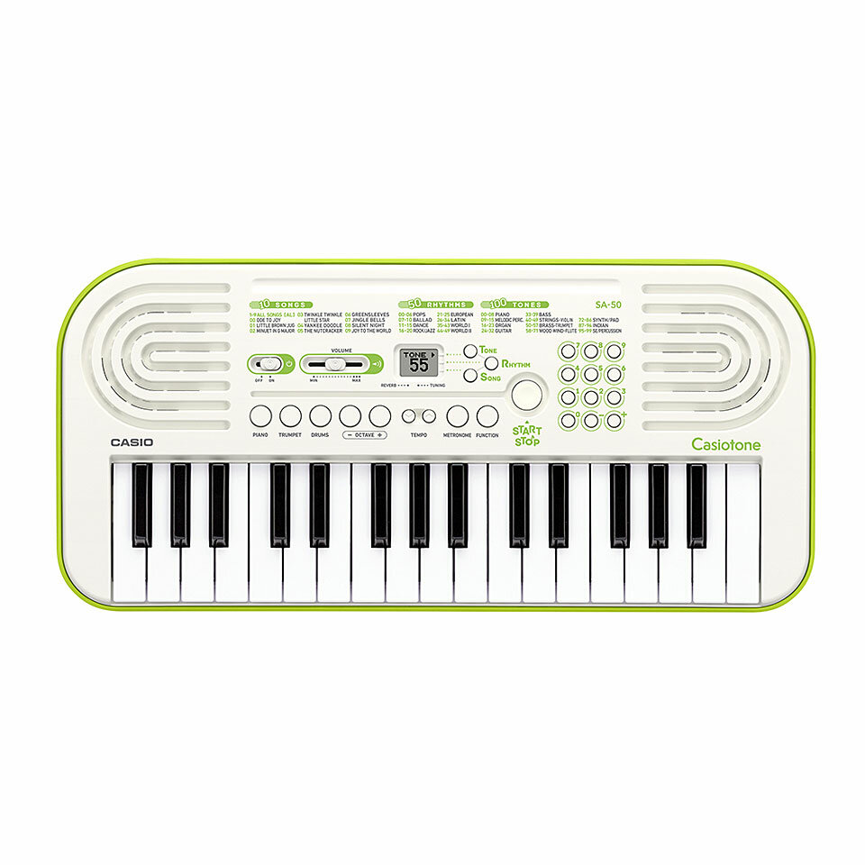 Casio SA-50 синтезатор с автоаккомпанементом, 32 мини-клавиши, 32 полифония, 100 тебров, вес 1кг
