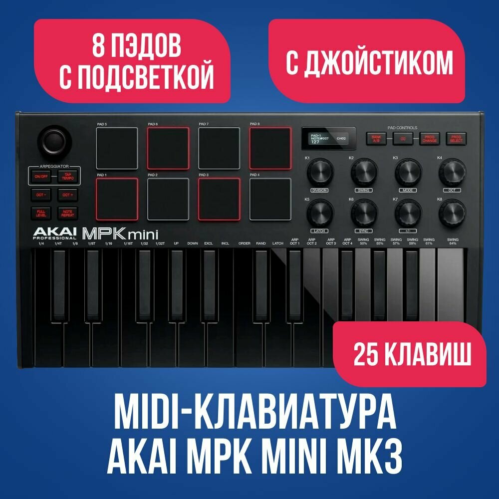 Мииди клавиатура USB MIDI-клавиатура AKAI MPK Mini MK3 Black информация: