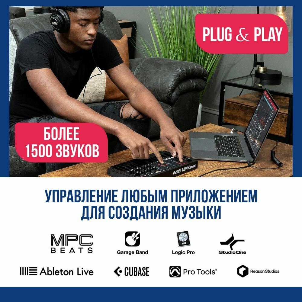 Akai Professional MPK Mini Plus / USB-контроллер MIDI-клавиатуры с 37 мини-клавишами, 8 пэдами MPC