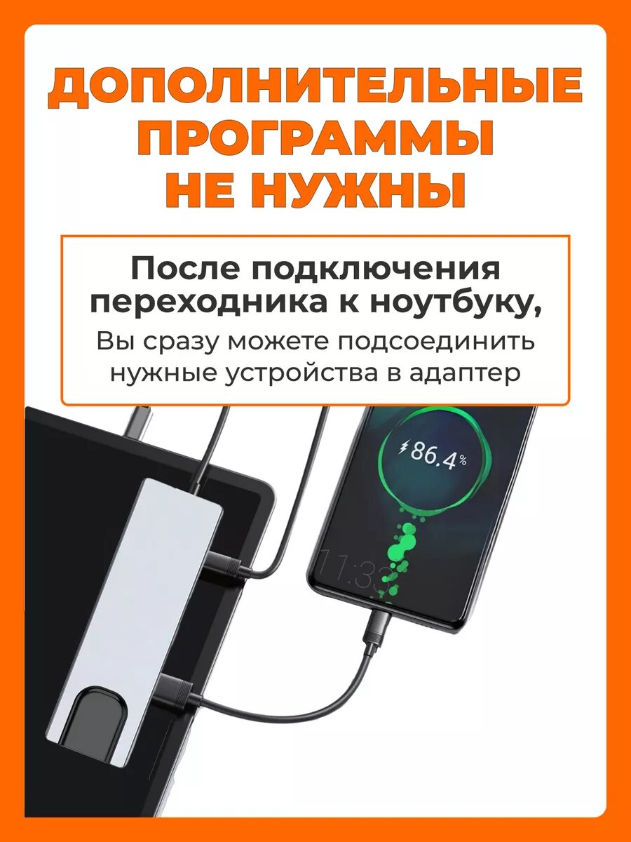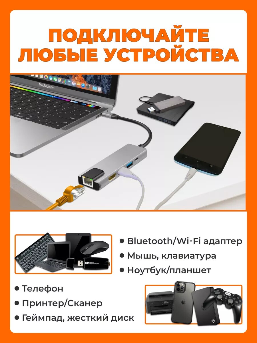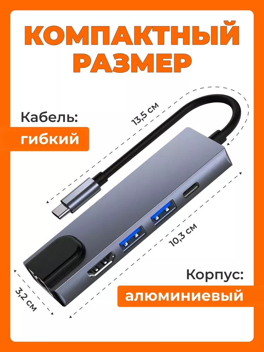 USB Hub Концентратор 5 портов: USB, Type-C, HDMI, Ethernet информация: