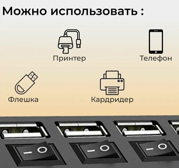 Отзывы на Разветвитель USB-хаб / USB-hub на 7 портов с выключателями для периферийных устройств, Led подсветка, чёрный