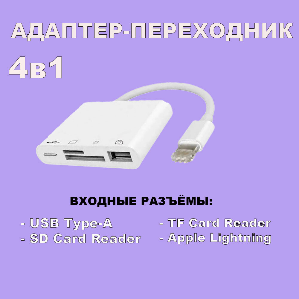 Отзывы на Хаб / Адаптер / Переходник 4 в 1, разъемы: Lightning, USB-A USB 3.0 OTG, USB-C, SD / TF Card Reader