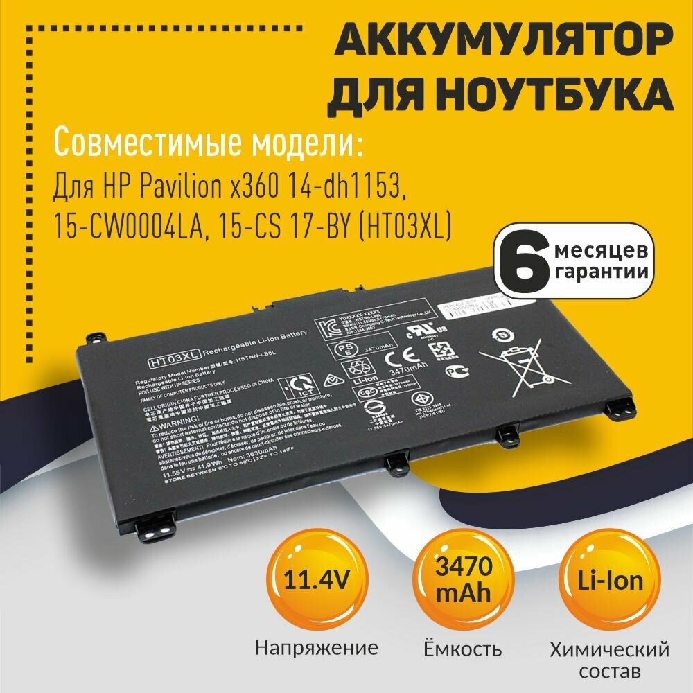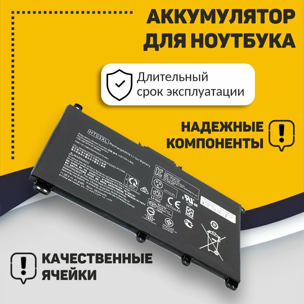 Аккумуляторная батарея для ноутбука HP 15-CS 17-BY (HT03XL) 11.55V 3470mAh черная информация:
