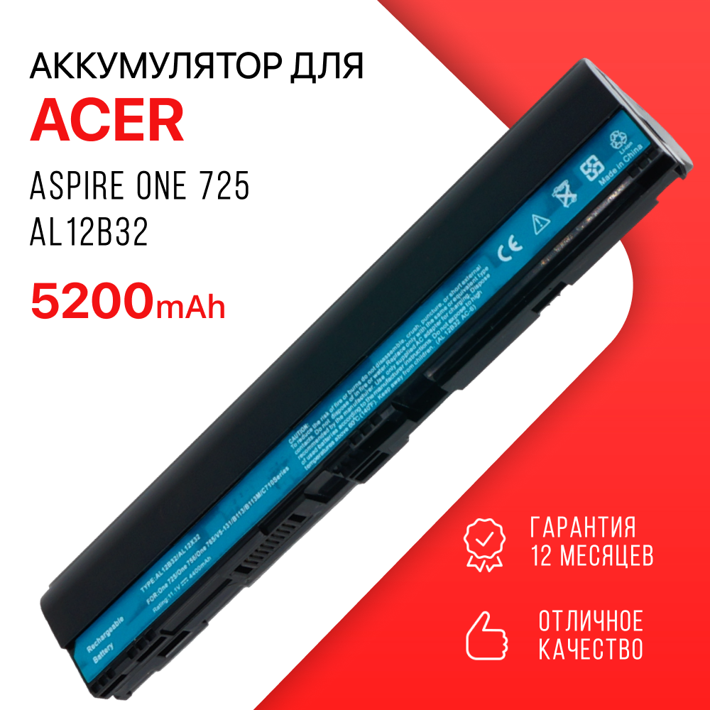 Отзывы на Аккумулятор для Acer AL12B32 / AL12B72 / Aspire One 725 / AL12A31 / Aspire V5-171 / AL12X32 / Aspire One 756 / TravelMate B113 / AL12B31 (5200mAh, 11.1V)