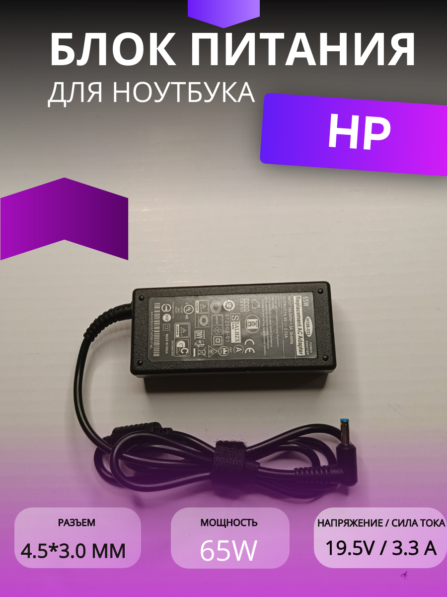 Отзывы на Блок питания для ноутбуков HP, 19,5 В, 3,33 А, 65 Вт, штекер 4,5 х 3,0