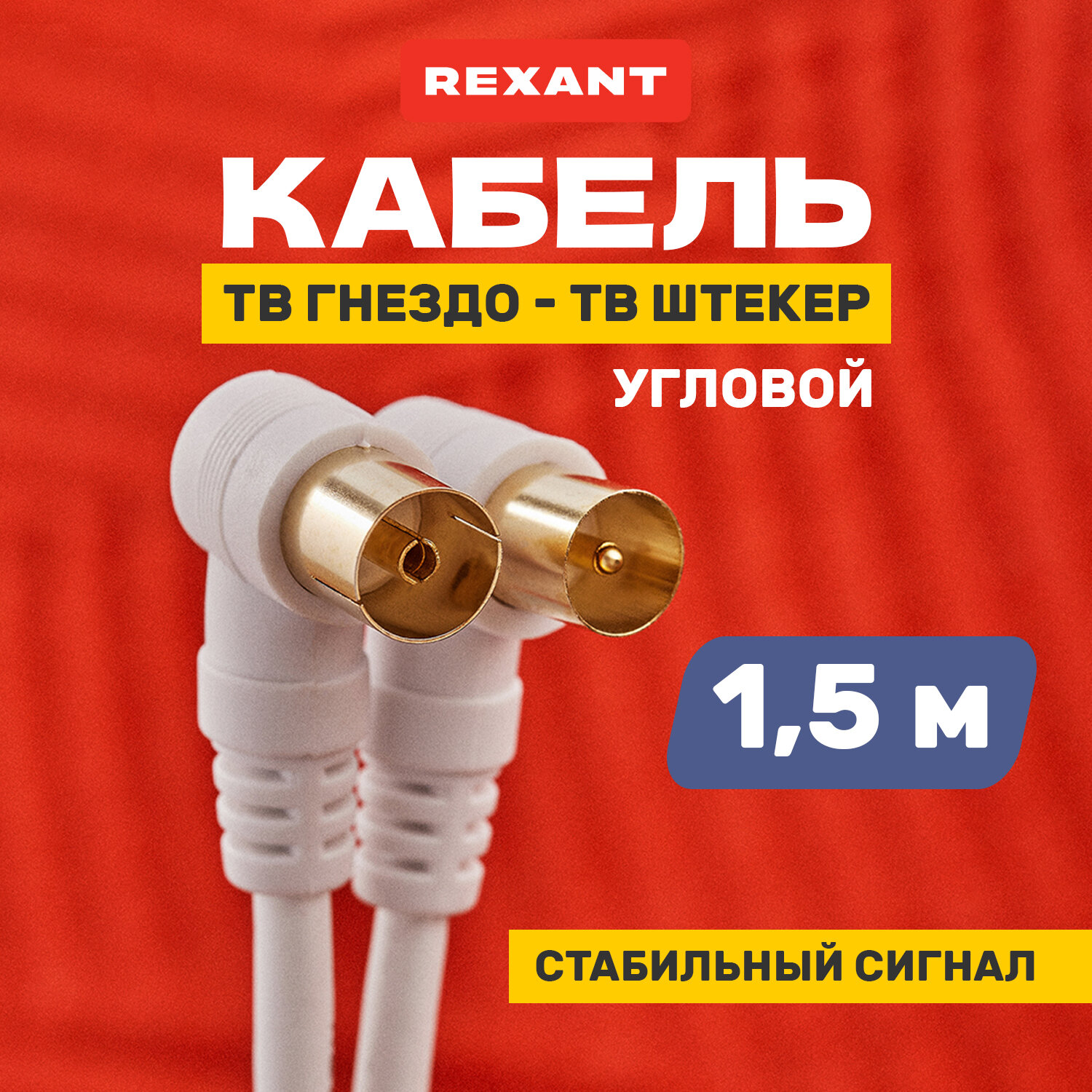 10 цен на Шнур ТВ гнездо - ТВ штекер, угловой, длина 1,5 метра, белый REXANT