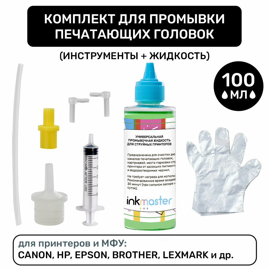 10 цен на Комплект для промывки печатающих головок в Canon и HP (инструменты + промывочная жидкость 100 мл) Inkmaster