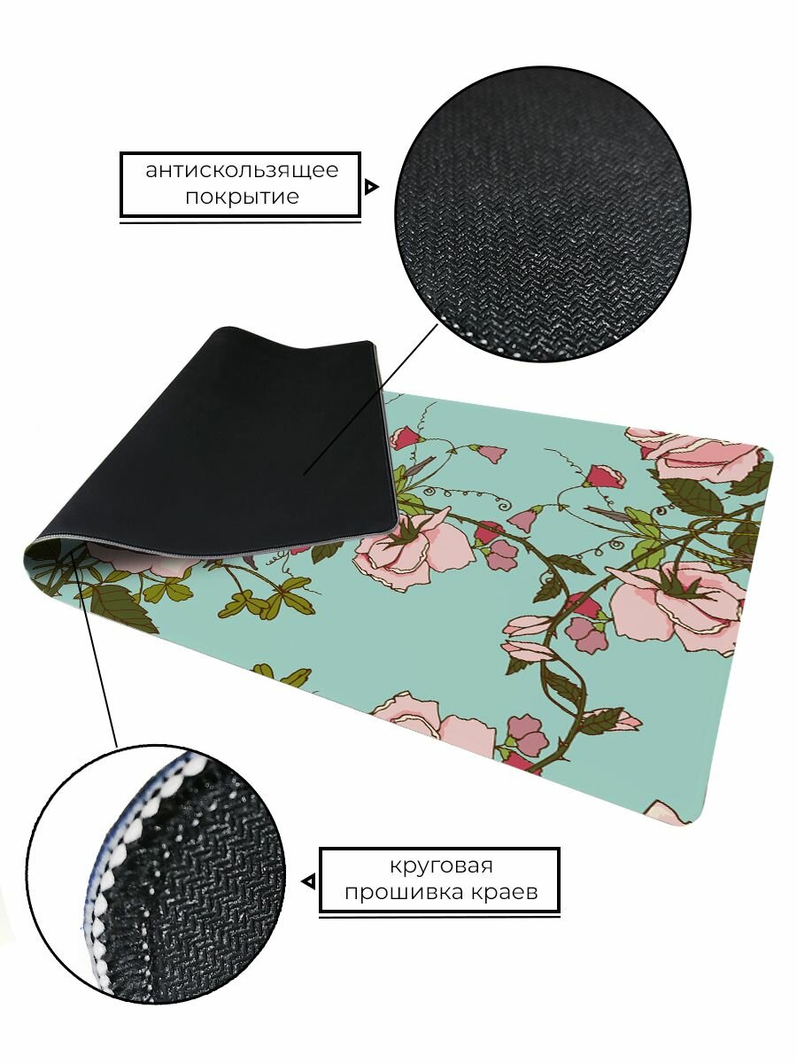 Коврик для мыши большой 90 х 40 см, антискользящий цветы 5 1 336 ₽