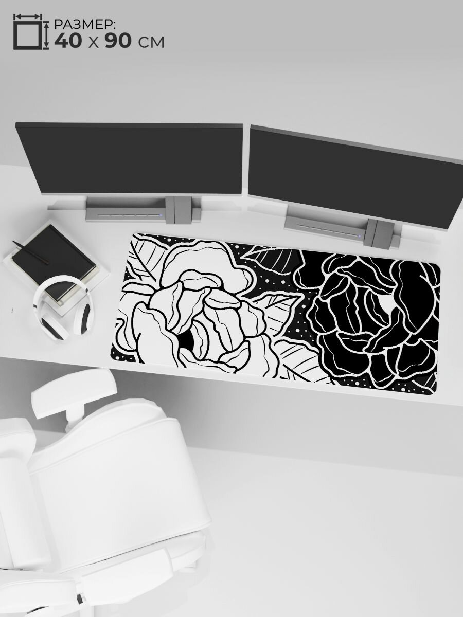 Коврик для мыши большой 90 х 40 см, антискользящий цветы 3 1 336 ₽