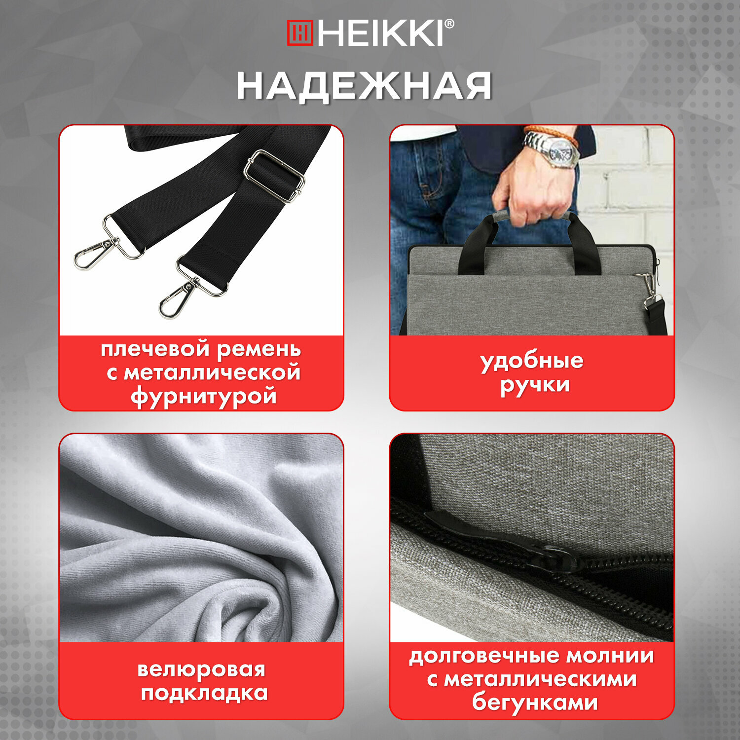 Отзывы на Сумка портфель Heikki Profitable (хейки) с отделением для ноутбука 14", 2 кармана, серая, 26х36х3 см, 272597
