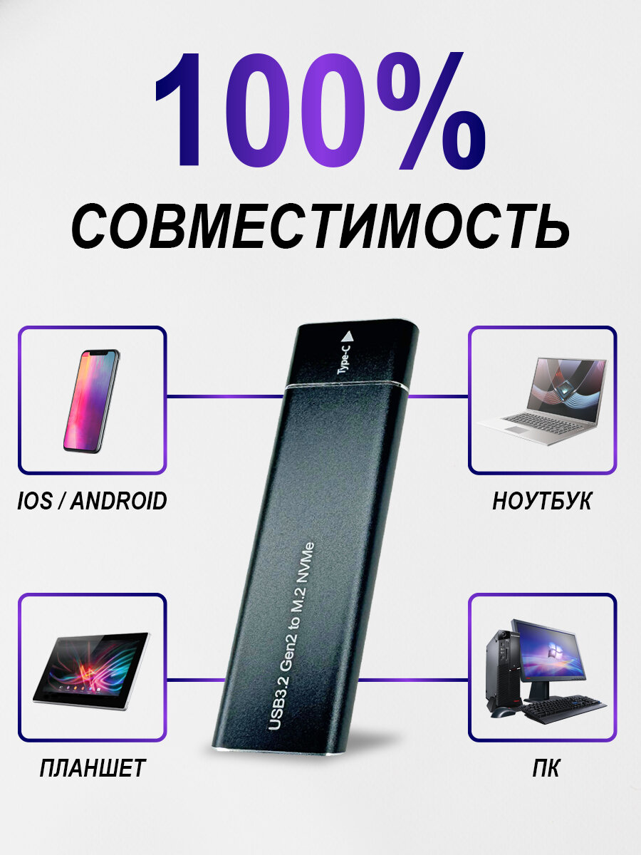 Отзывы на M2 NVME" Внешний бокс для жесткого диска, USB 3.2 GEN 2, Type-c/Type-c