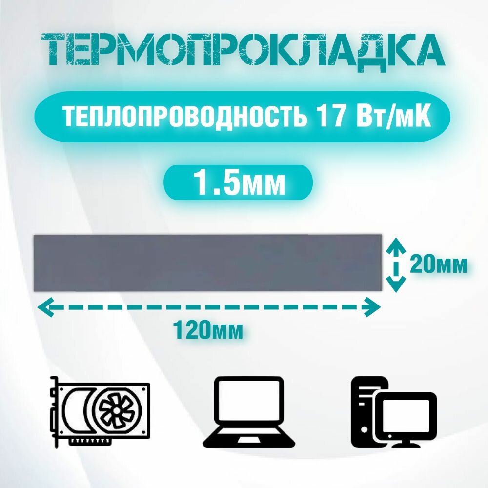 Термопрокладка серая теплопроводностью 17 Вт/mk 120x20x1.5 мм/Термопрокладки для ПК информация: