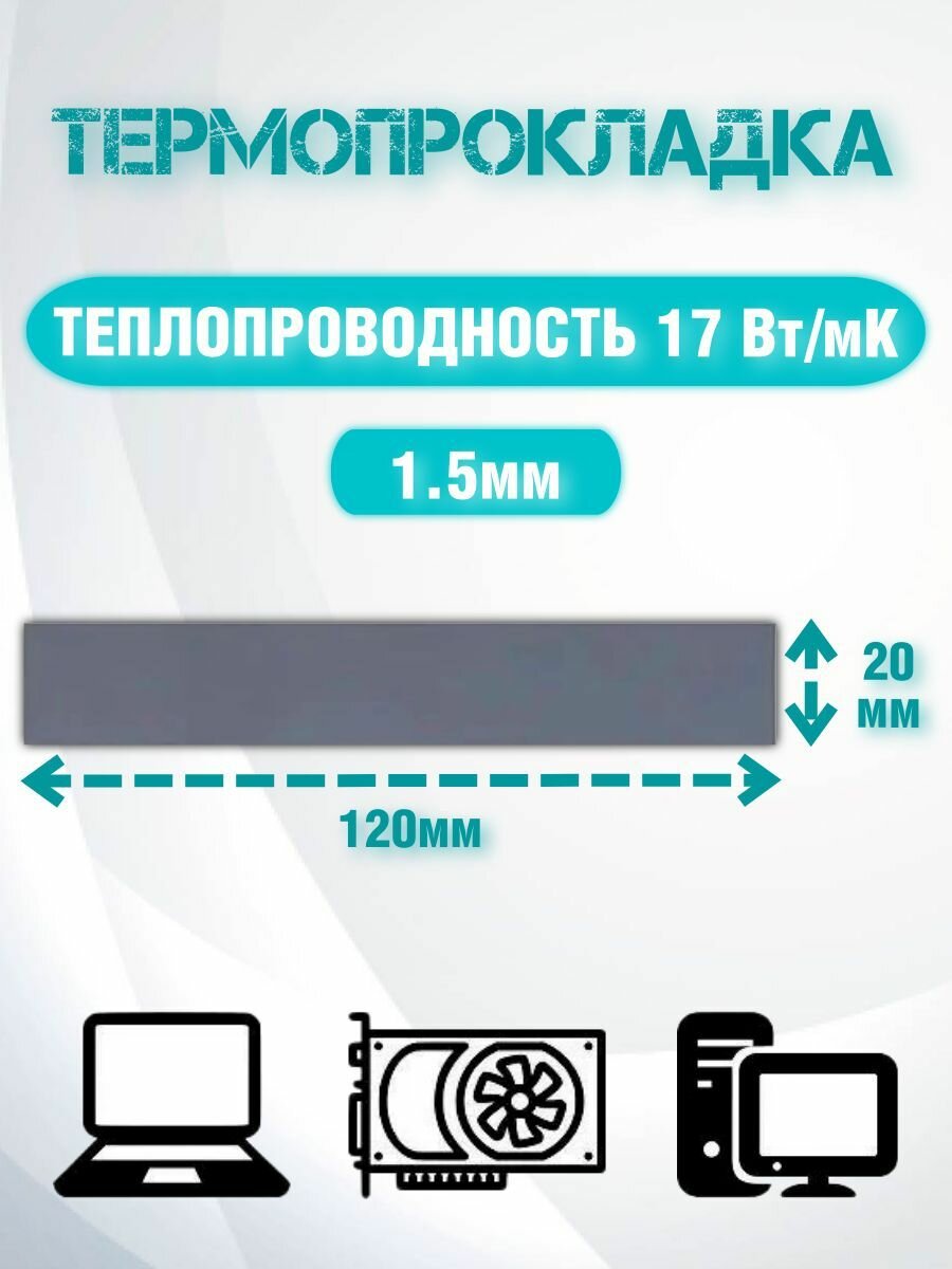 Отзывы на Термопрокладка серая теплопроводностью 17 Вт/mk 120x20x1.5 мм/Термопрокладки для ПК