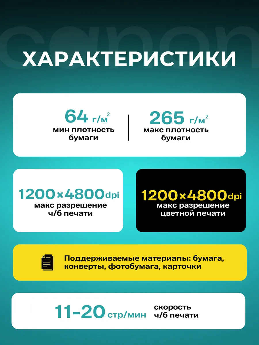| Печать на различных носителях | глянцевая бумага / карточки / конверты / матовая бумага / фотобумага |