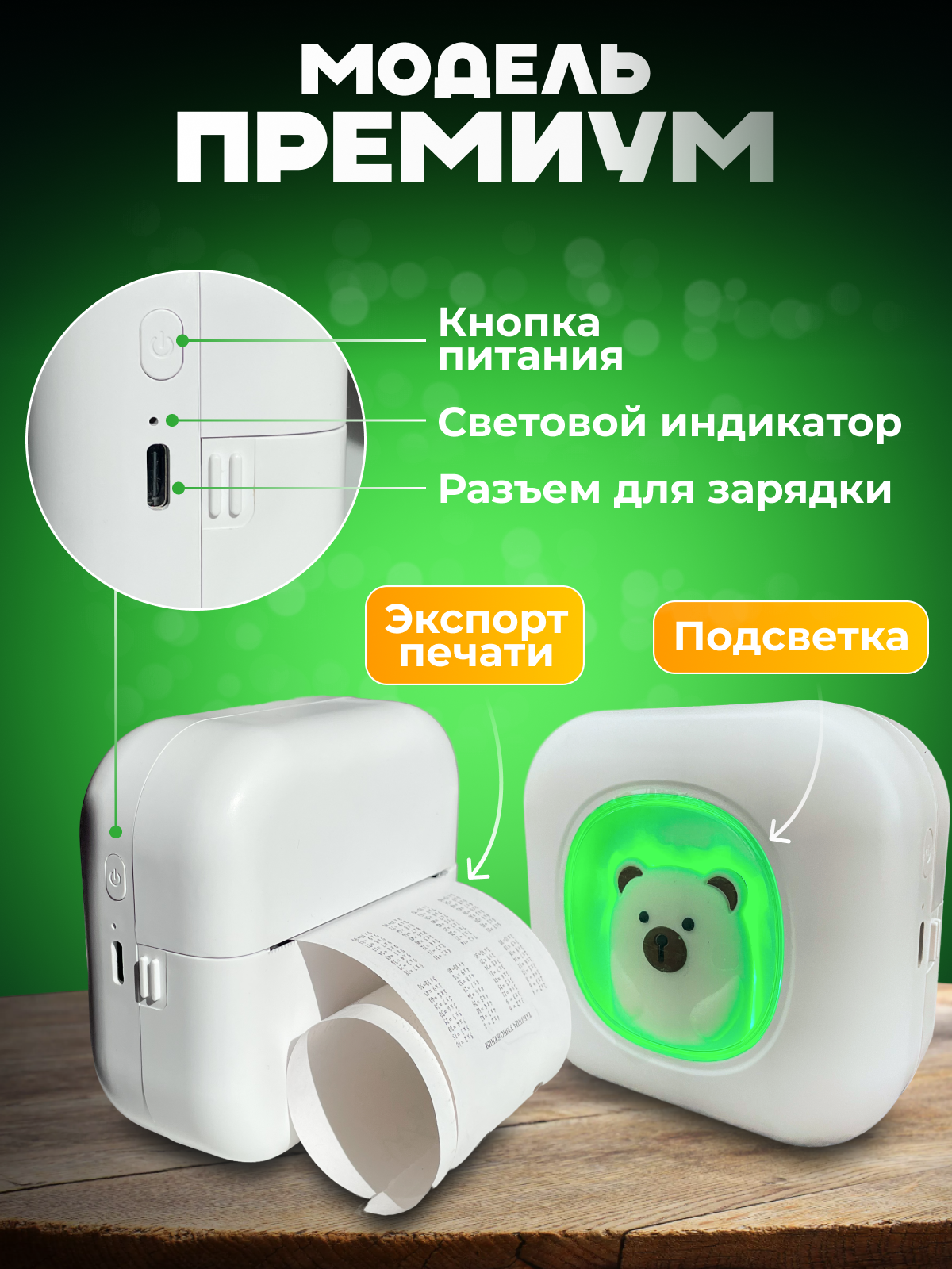 Компактный беспроводной термопринтер с Bluetooth и комплектом бумаги информация: