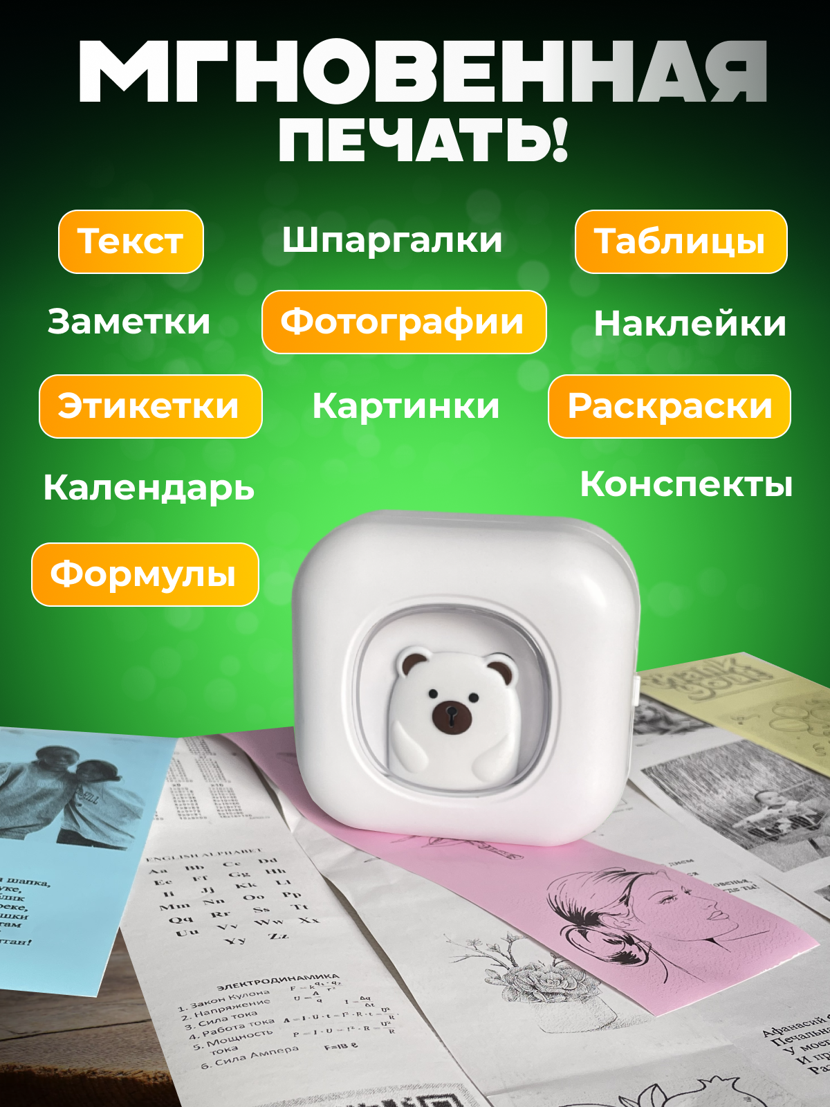 10 цен на Компактный беспроводной термопринтер с Bluetooth и комплектом бумаги