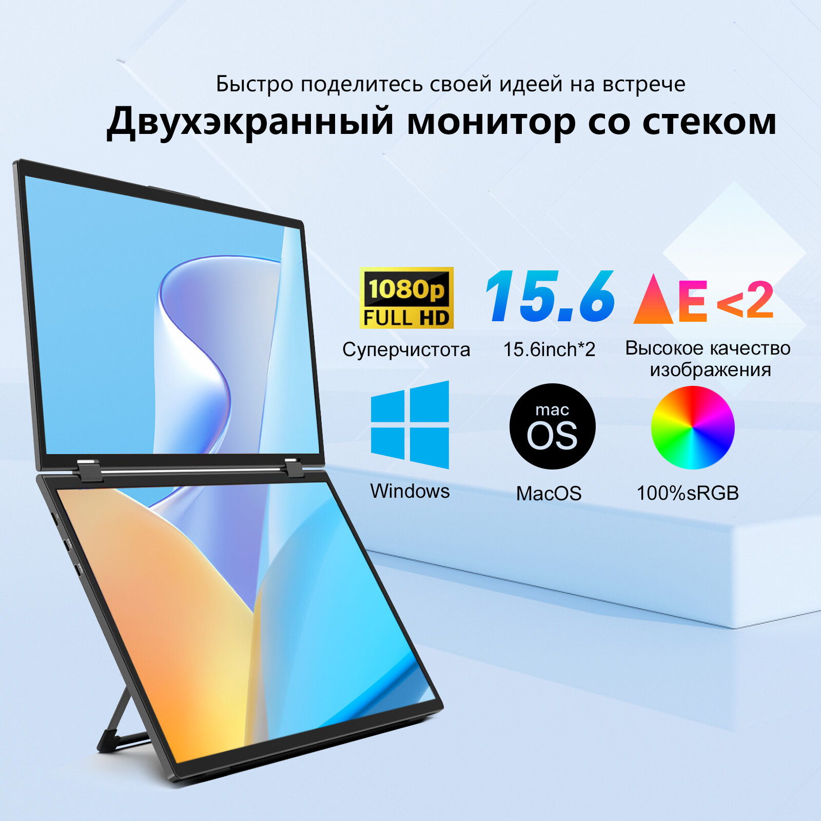 Отзывы на Reletech 15,6-дюймовый двойной экран портативный монитор 1080P FHD с 360 ° флип внешний экран для ноутбука Mac Xbox PS5 переключатель телефон ПК