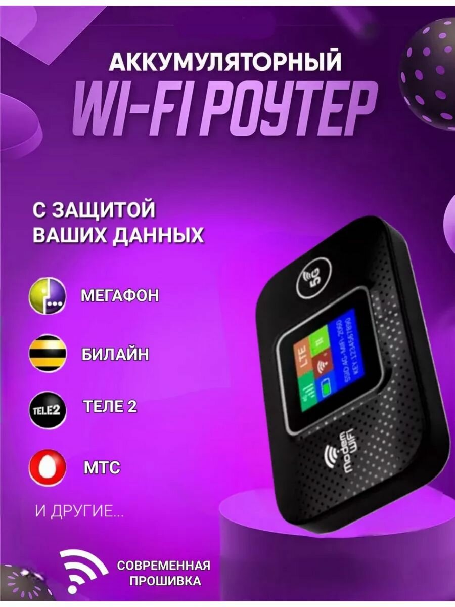 Wifi роутер модем, карманный 4G / 5G / LTE роутер, вай фай роутер с сим картой для дома и квартиры, максимальная скорость 300 мбит, ЖК экран, черный информация: