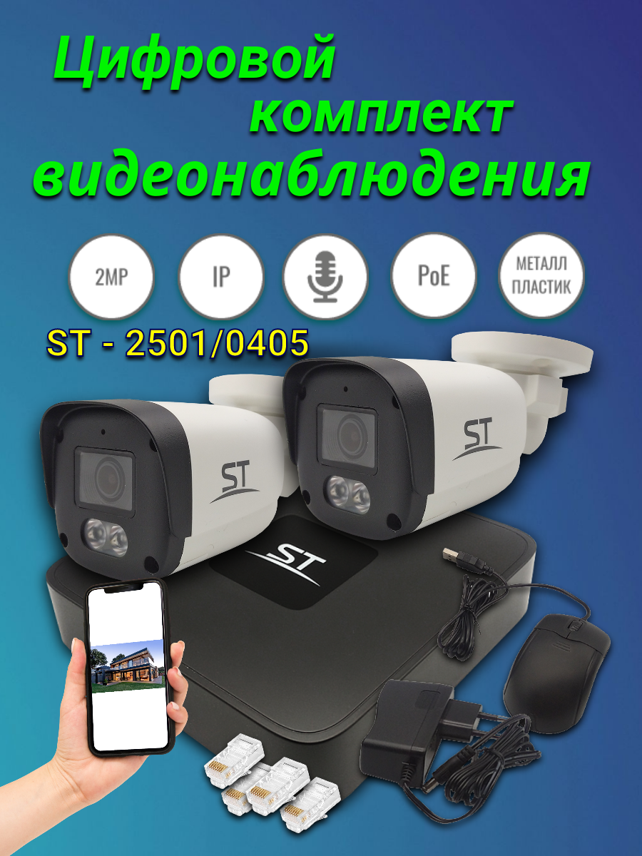Комплект видеонаблюдения для уличной установки ST-2501/0405 POE информация:
