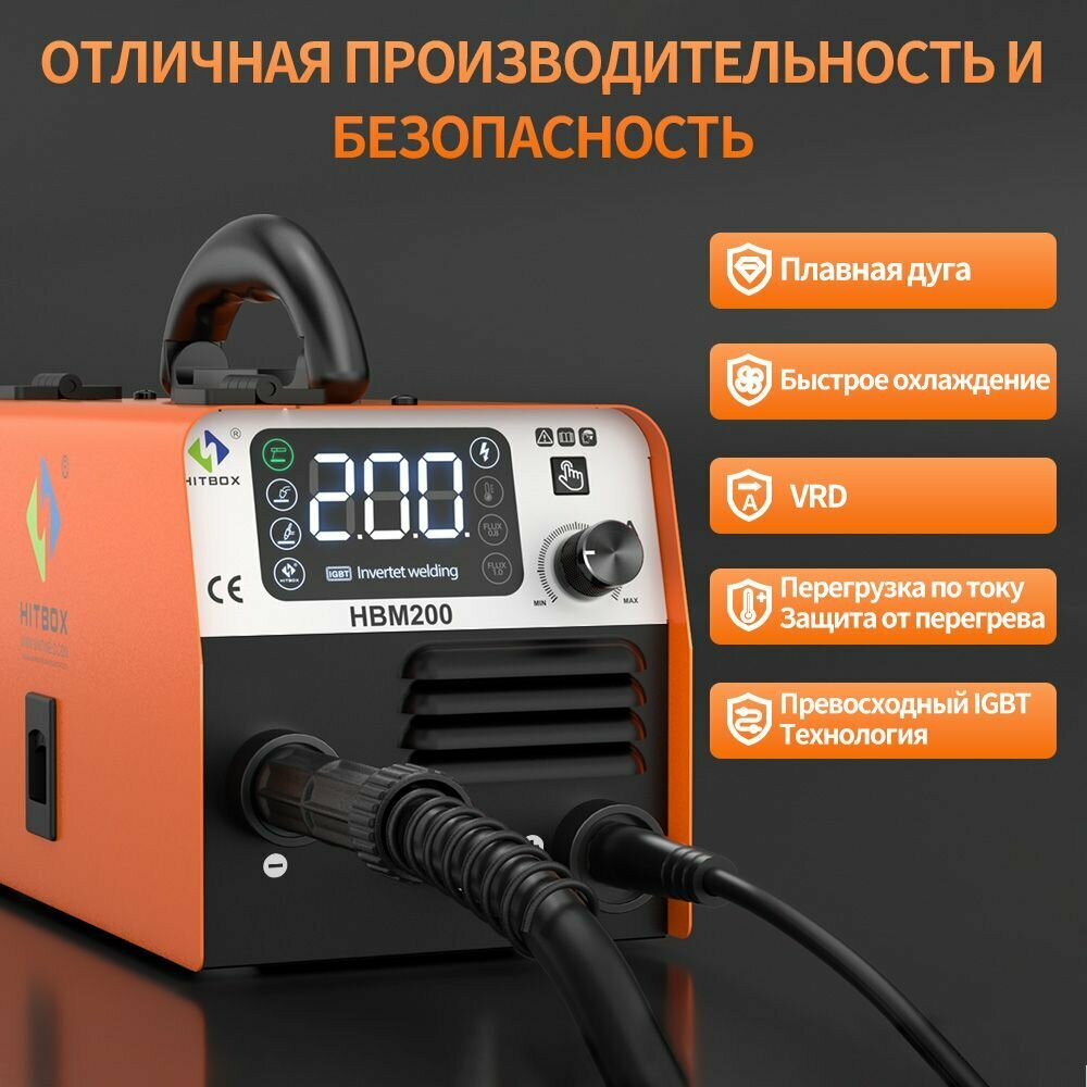 HITBOX Сварочный Полуавтомат Без Газа, 3 In 1 ARC/MIG/LIFT-TIG HBM200 Сварочный Аппарат Инверторный информация: