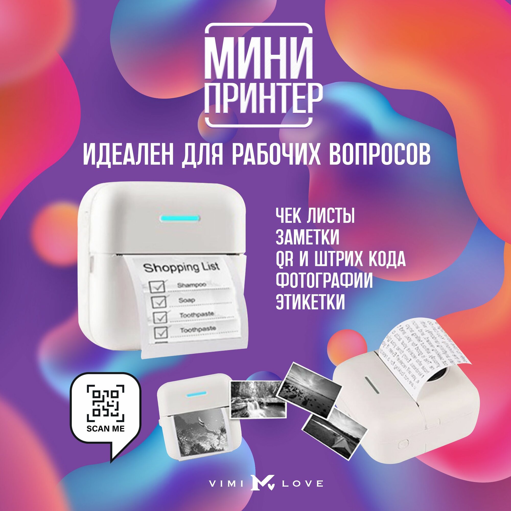 Отзывы на Мини принтер ViMi портативный термопринтер для наклеек, этикеток, заметок
