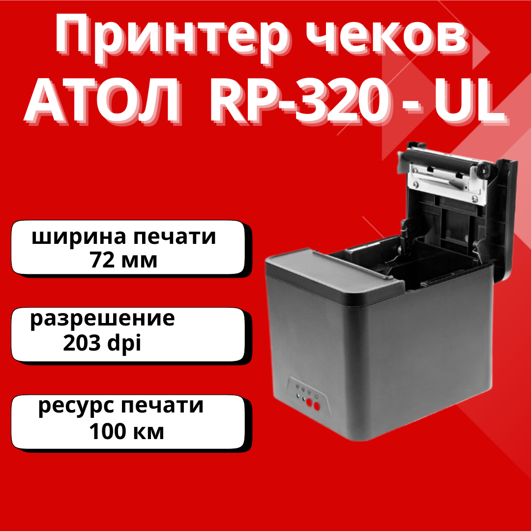 Отзывы на Чековый принтер АТОЛ RP-320-UL( термо; USB, Ethernet; 200 мм/сек; 72 мм; черный )