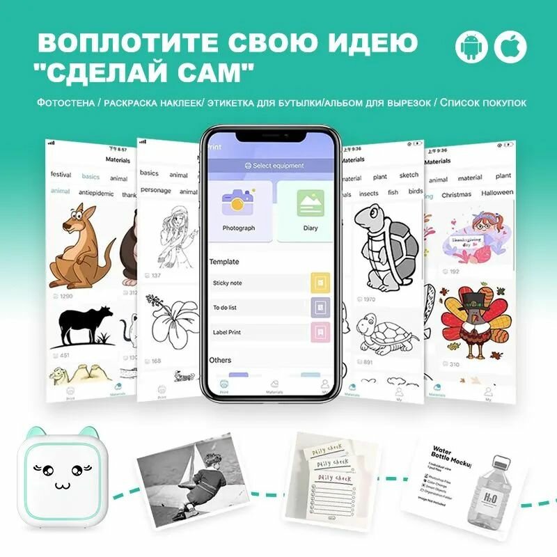 Портативный термопринтер с Bluetooth для телефона, принтер для печати документов, этикеток, стикеров, наклеек