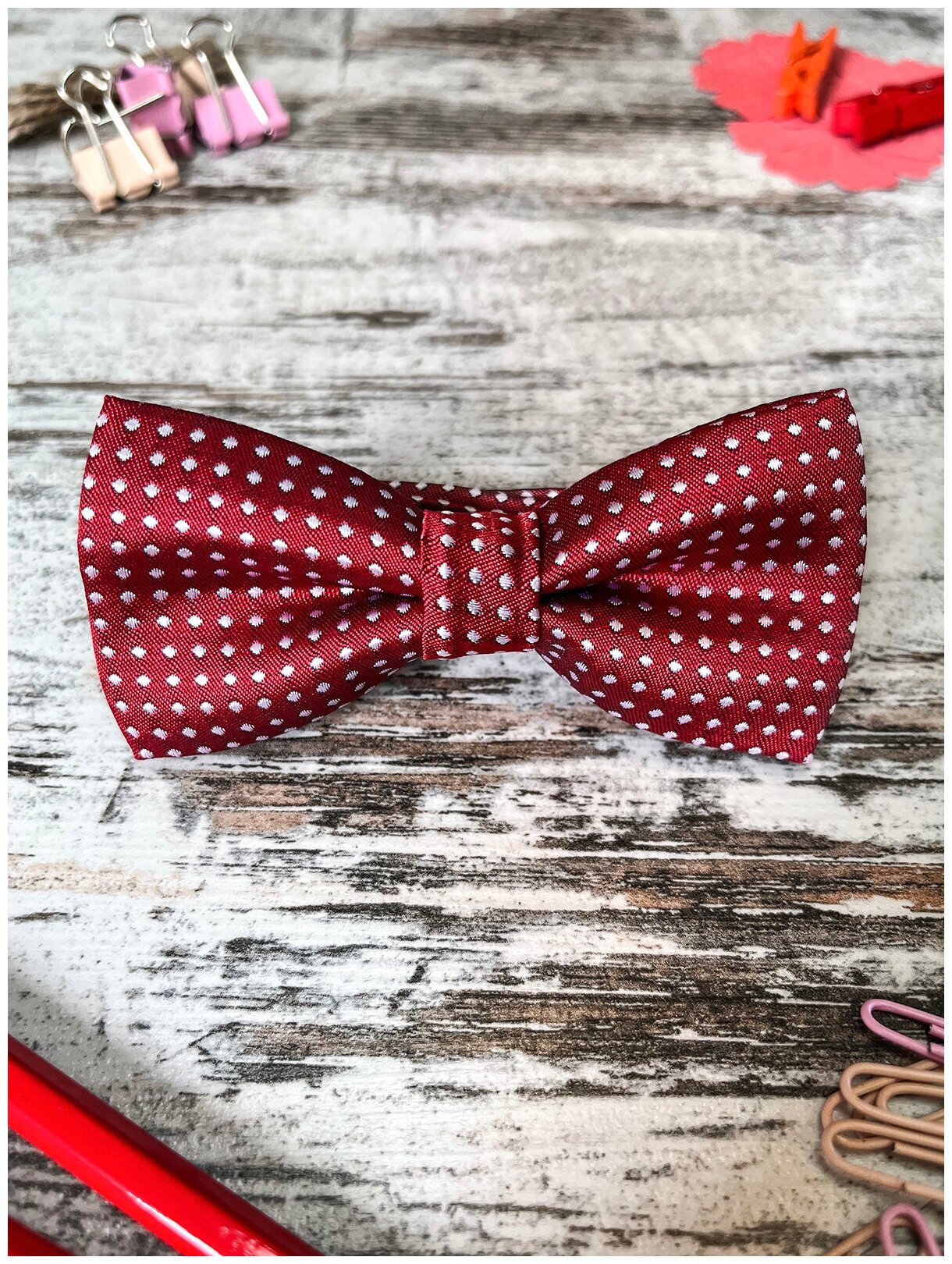 Детский галстук-бабочка для мальчика бордовый в белый горошек информация: