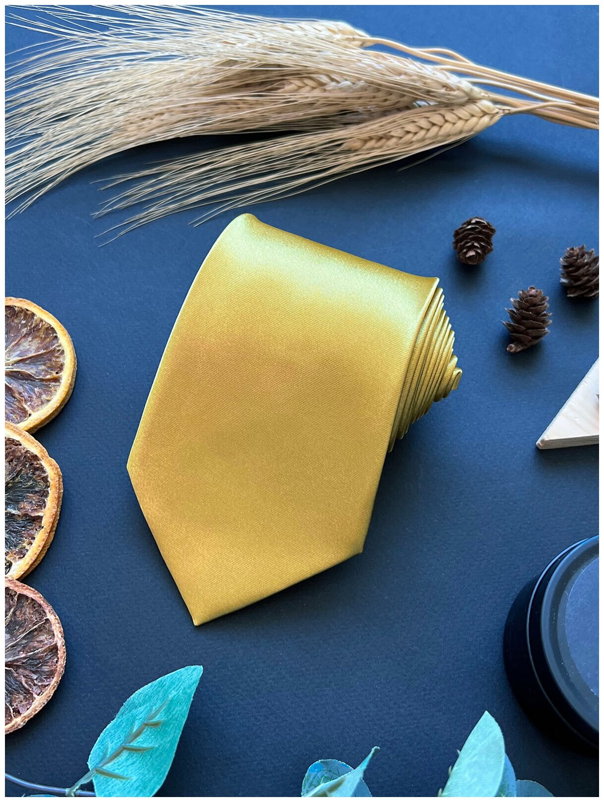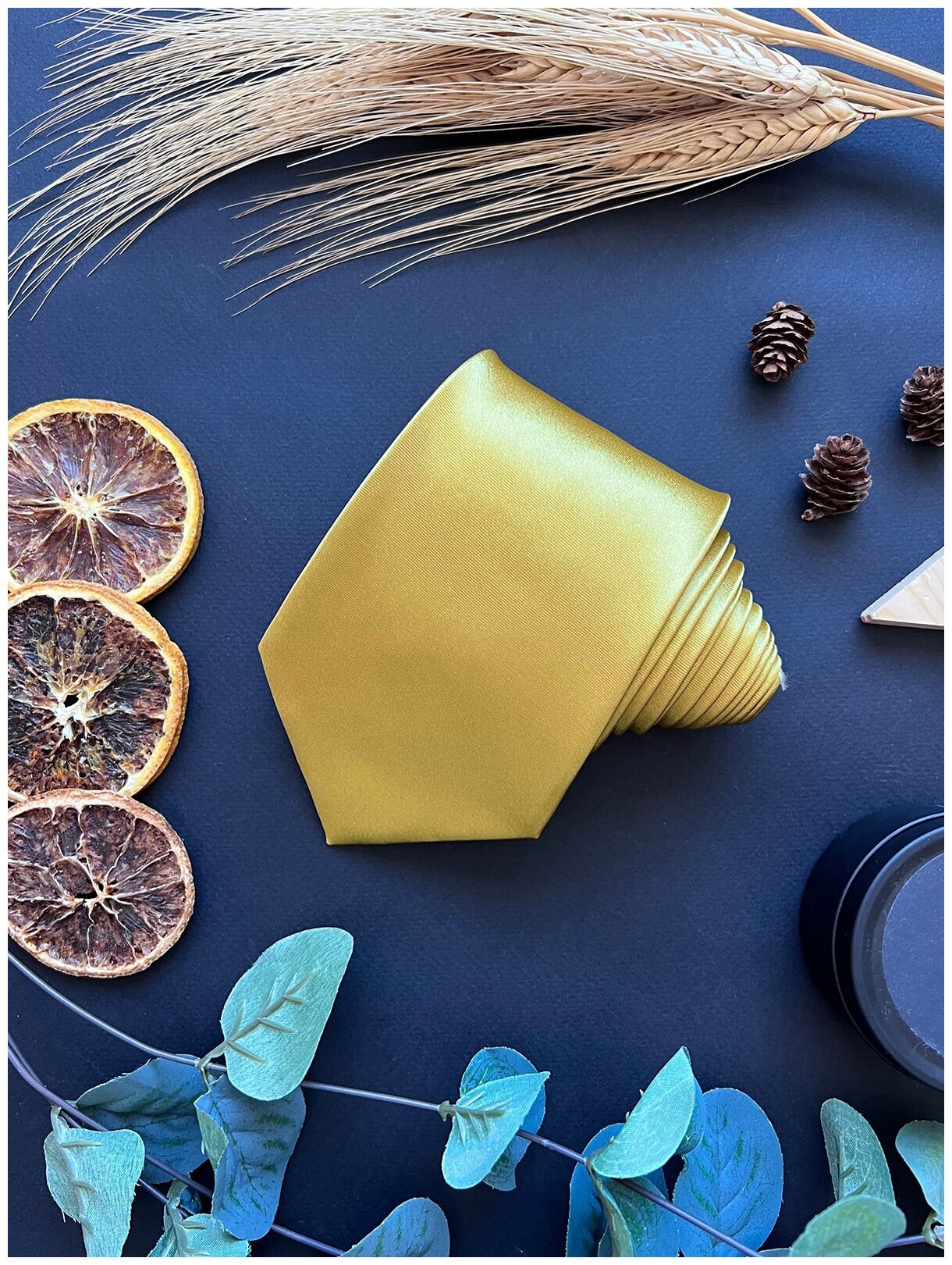 | Подробная комплектация | Широкий мужской галстук атласный однотонный золотой - 1 шт. |