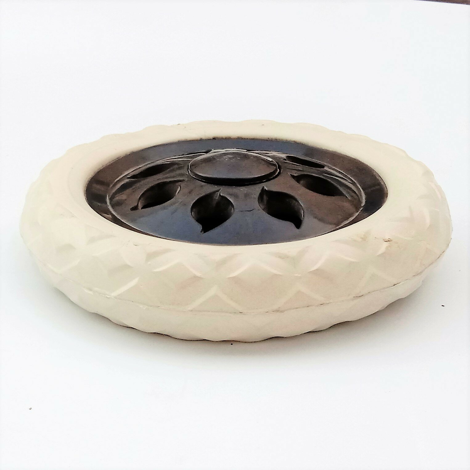 Колесо для сумки тележки хозяйственной пластиковое 16 см белый обод с черной серединой , ось 8 мм информация: