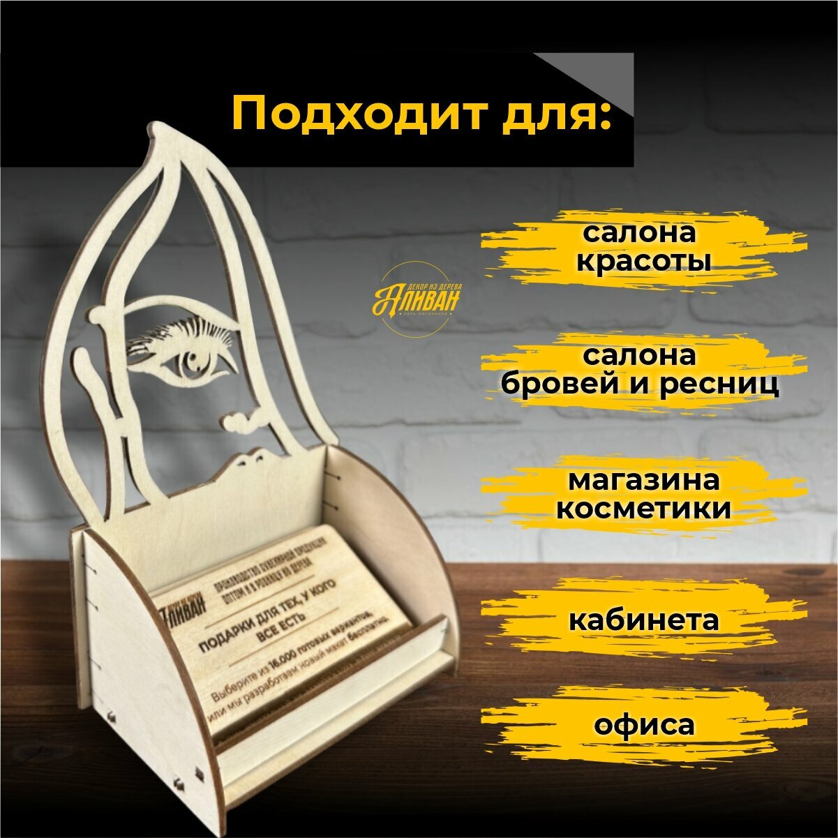 10 цен на Подставка под визитки для парикмахерской, салона красоты брови натуральный