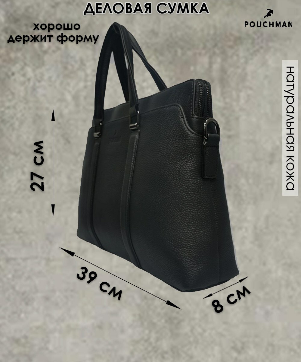 Портфель мужской, кожаный PouchMan, деловой, для документов и ноутбука, с ручками информация: