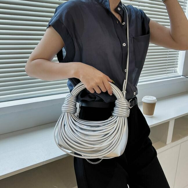 Сумка женская BOTTONCINI плетеная, креативная с узлом, серебро, р-р 21х10х5 см информация: