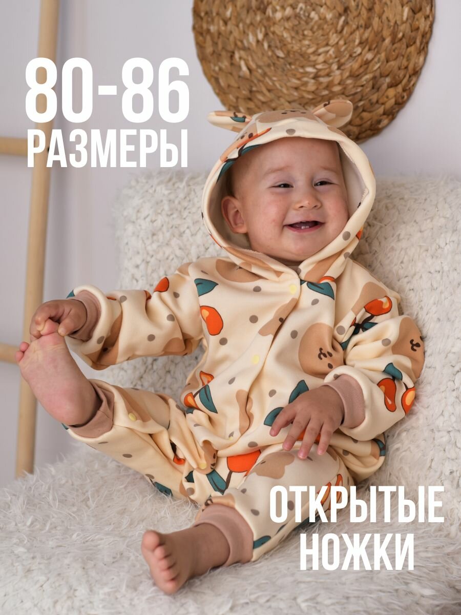 Комбинезон Наследникъ Выжанова Базовая коллекция, открытая стопа, размер 3-6 мес, натуральный