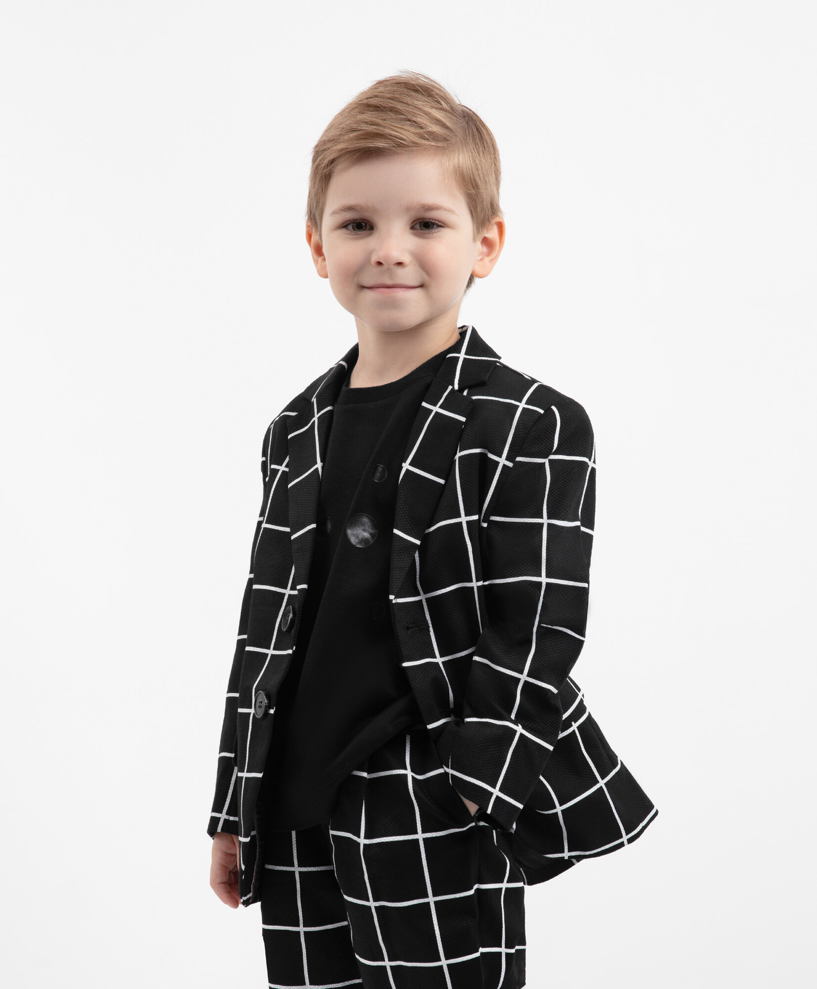 Пиджак текстильный в клетку чёрный для мальчика Gulliver, р.134, мод.224GPBC4801 12 299 ₽