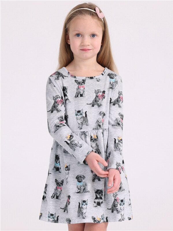 Платье для девочки в садик с длинным рукавом хлопок 100% Апрель 1ДПД4398001н/243/*/4208/*/*/*/* серый,мультиколор 56-110 информация: