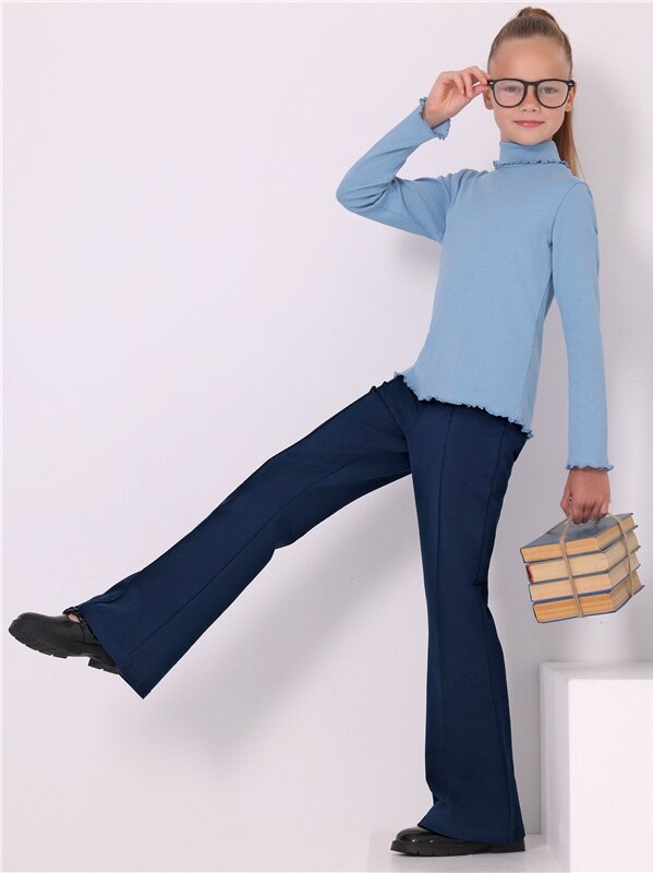 Блузка - водолазка школьная для девочки нарядная Апрель 1ДДВД4308804/989/*/4679/*/*/*/* синий 80-152
