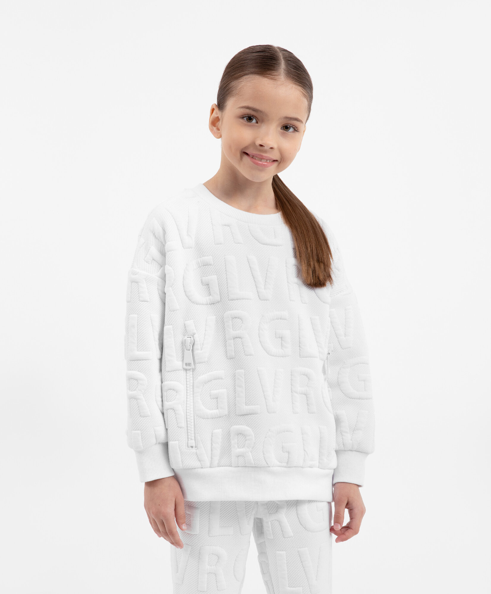 Толстовка с высокой стойкой на молнии из капитония белая для девочки Gulliver, р.128, мод.22403GMC1606 информация: