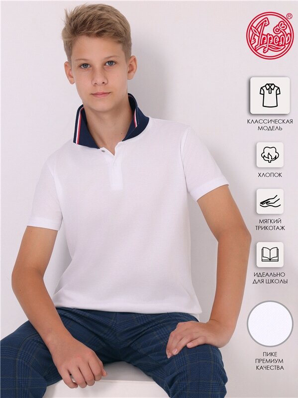 Футболка поло для мальчика белая школьная форма хлопок Апрель 1ПДПК4486090/ белый,синий 152-80 информация:
